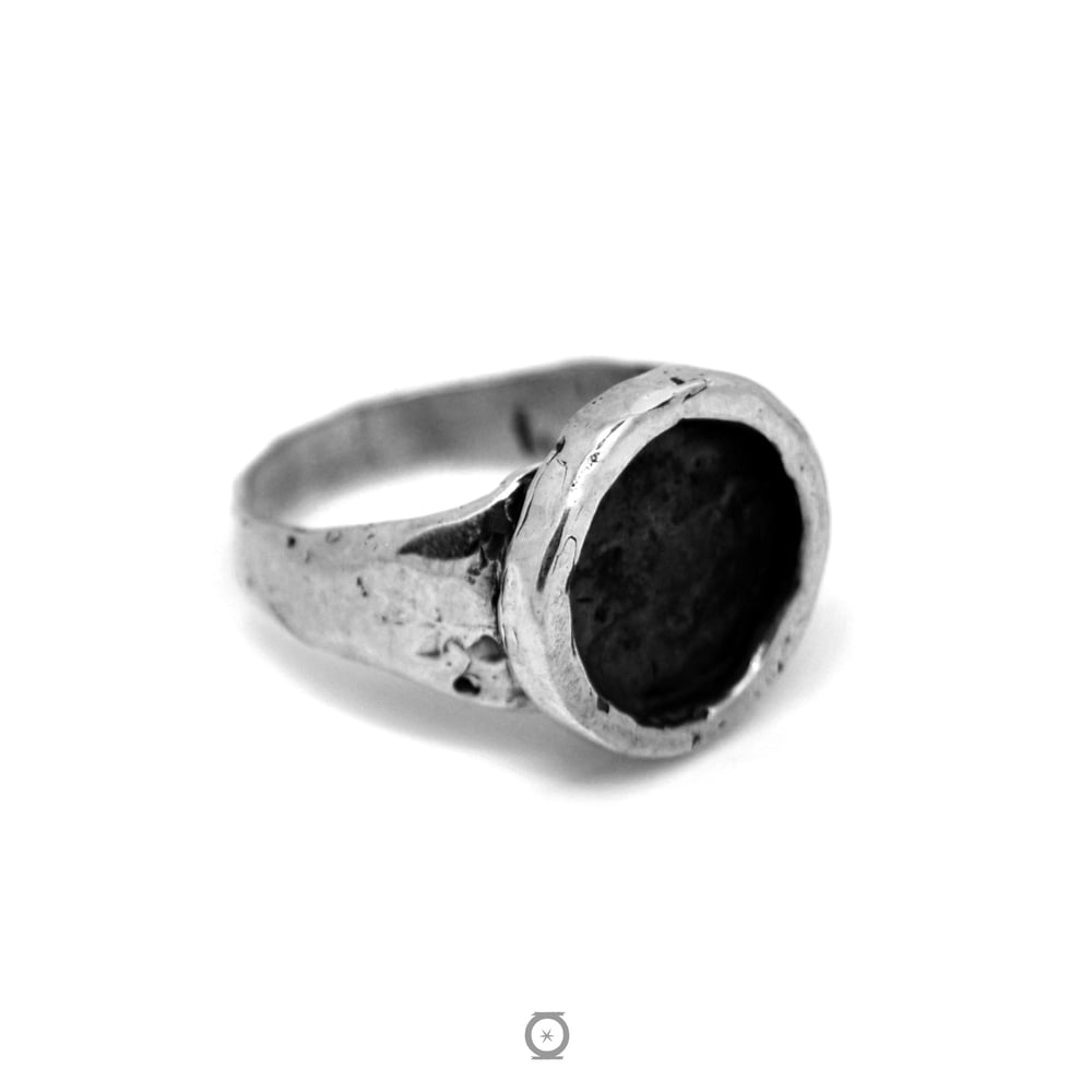 Se trata de un anillo de plata de ley envejecida. Diseñado para looks urbanos, actualizando el clásico sello masculino con un aspecto más agresivo y auténtico.