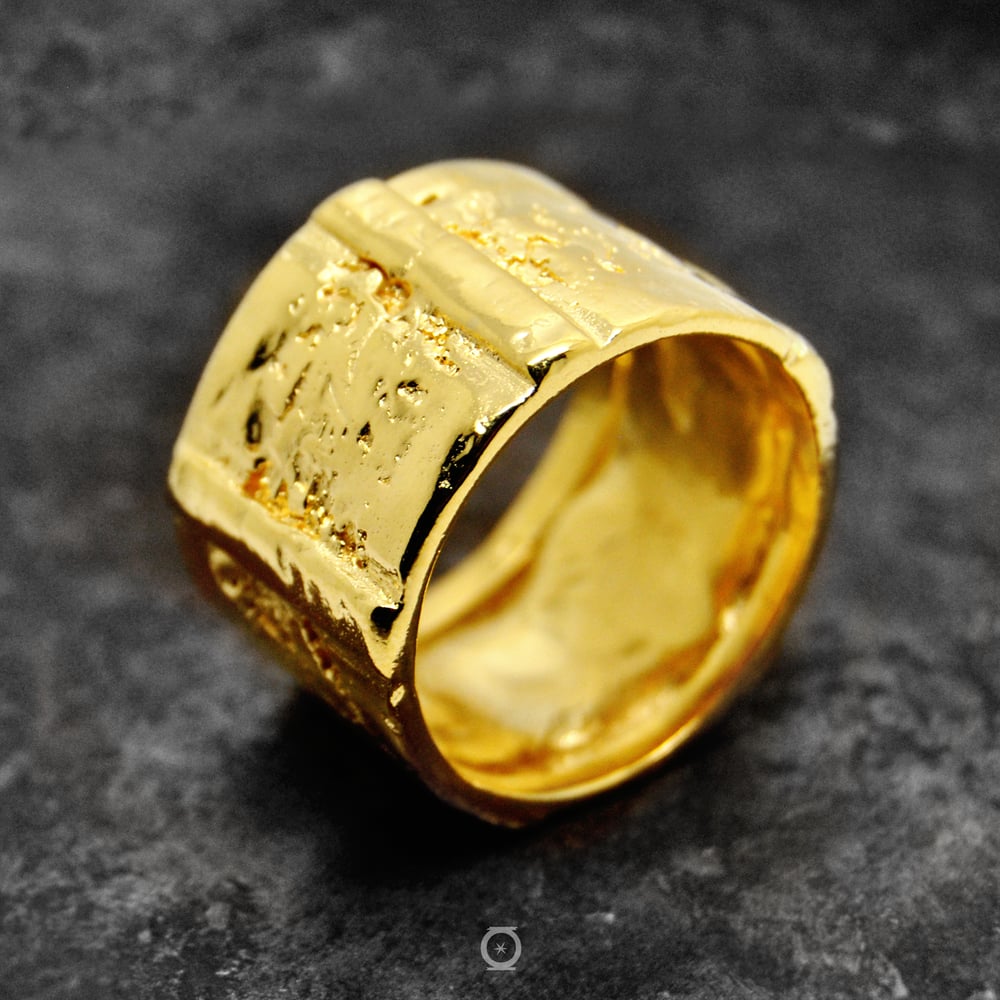 El anillo 7120 se ha fundido y labrado a mano en plata de ley 925 mediante un proceso totalmente artesanal conservando una rugosidad de sus orígenes en el aserrado, martillado y conformado del metal