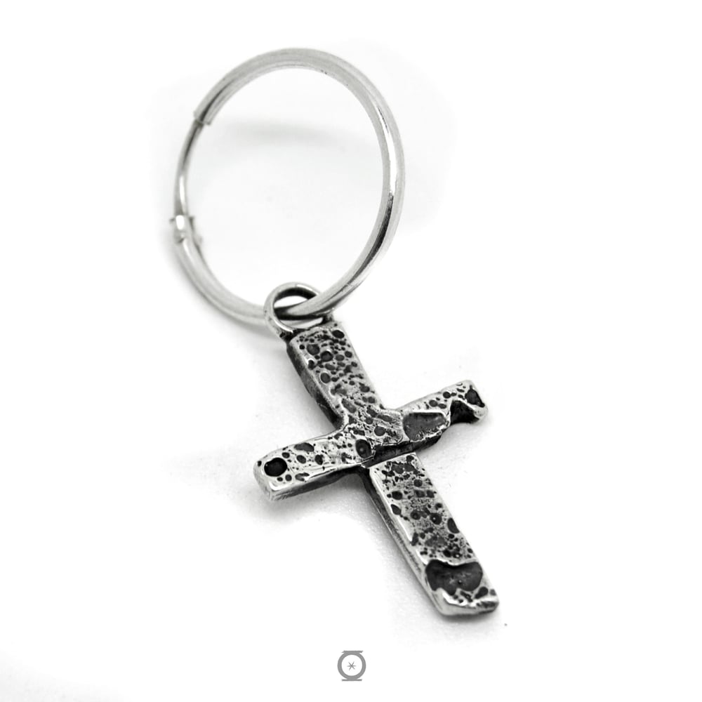 Esta cruz texturizada a fuego en plata de ley no te hace mas cristiano, pero algo hace. El mosquetón la convierte en una pieza polivalente, que puedes colgar en pulsera, collar o pendientes.
