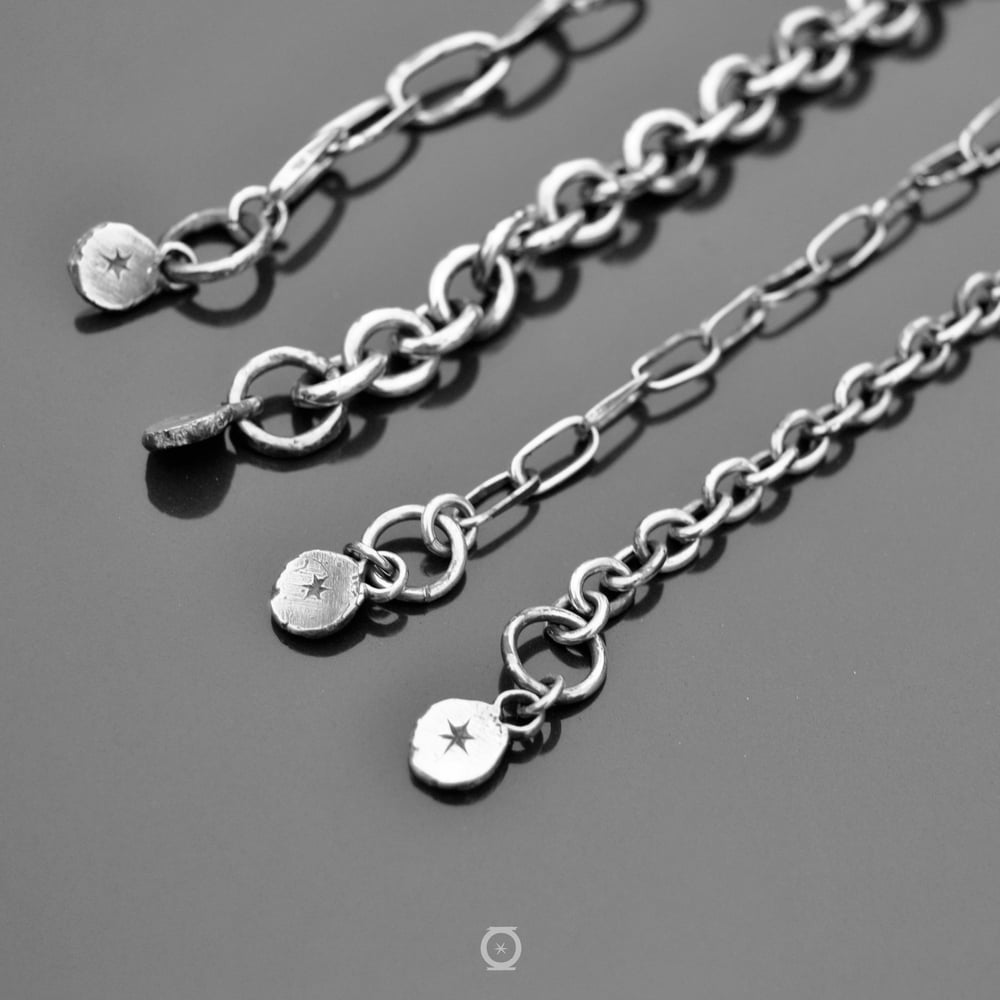 Pulsera de plata de ley con eslabón artesano martillados en hilo de 1,5mm y perlas naturales. Si la quieres con un cierre tradicional de mosquetón, sólo tienes que pedírnoslo.