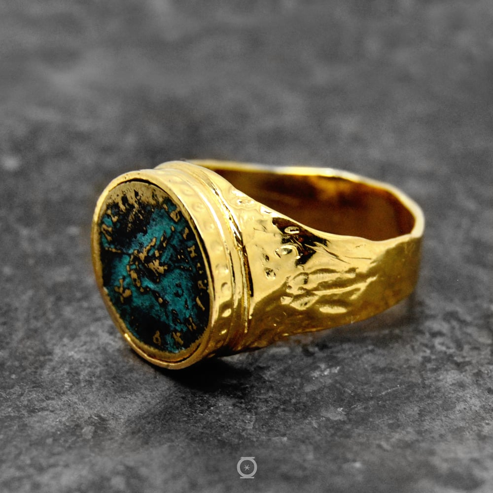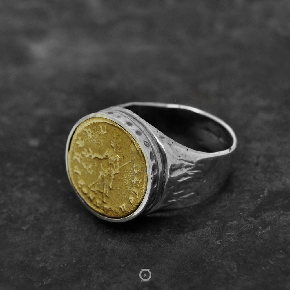 El anillo 7403 en plata de ley con un moneda dorada engastada.